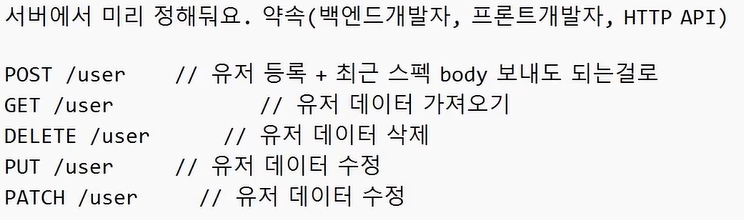 ex)브라우저에서 어떤 주소와 메서드로 요청을 보내면 서버에서 이런행동을 해줄게라는 약속. / 표준만 있지 정확하게 정해진게 없음